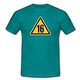 Spreadshirt, Warning 16 | Achtung 16, Tee shirt classique Homme, bleu diva, M