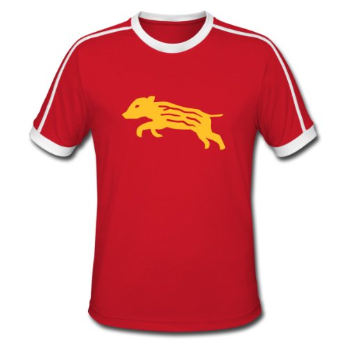Spreadshirt, frischling ferkel wildschwein baby wald tier natur jagd jäger, Tee shirt Retro Homme, rouge/blanc, L