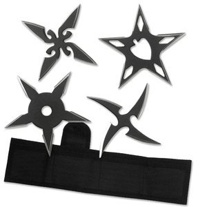 Throwing Star - Shuriken 4 pcs metal mini etoiles ninja commando - noir - Housse de transport nylon - RC1064B